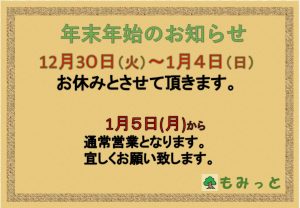 【年末年始は、12月30日(火)~1月4日(日)まで
